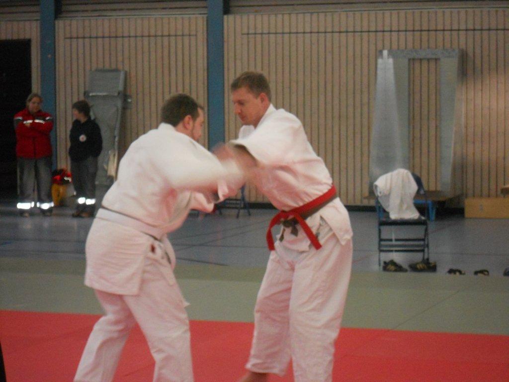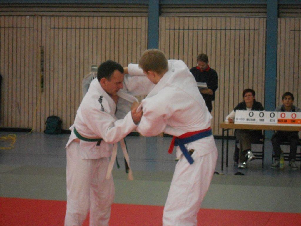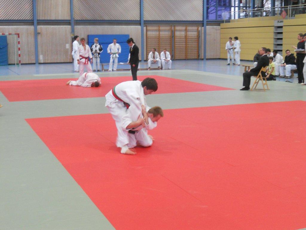 An diesem Wochenende war die Schwieberdinger Mannschaft verstärkt worden. Thomas Röhm, gab nach langer Abstinenz vom Wettkampfgeschäft sein Comeback. Seinen ersten Kampf verlor er leider gleich, den Kampf gegen die Waage. Thomi musste eine Gewichtsklasse höher starten, nämlich über 90 Kg. Somit sah die Besetzung wieder einmal ein wenig unglücklich aus. Ontje Wegmann -66Kg, Fabian Staber -66Kg, Manuel Mergel -66Kg, Christopher Schätzle -81 Kg, Sankey Shuhu +90Kg und Thomas +90Kg.