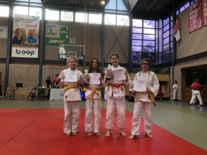 Bei Elli lief am heutigen Tag alles glatt. Zunächst besiegte sie ihre Angstgegnerin souverän im Boden und lies in den weiteren drei Kämpfen nichts anbrennen. 1. Platz!