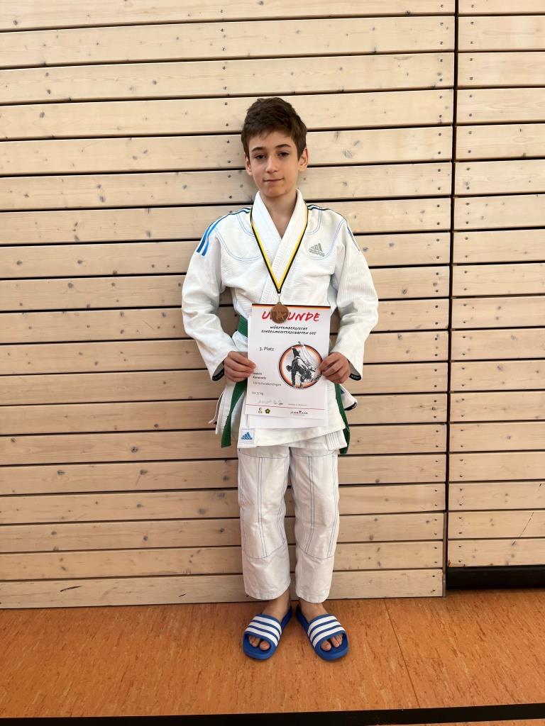 Am vergangenen Sonntag durften wir viele tolle Kämpfe bei den württembergischen Meisterschaften der unter 13-jährigen in Heubach beobachten. Natürlich waren auch Michail, Filippos, Ioakim, Leon und Lion mit am Start! Lion und Filippos starteten als jüngste in ihrer Altersklasse und Lion landete zusammen mit Ioakim in einer Gewichtsklasse. Mit vier engagierten Kämpfen und zwei bärenstarken Siegen konnte Lion sich den siebten Platz sichern. Ioakim verlor nach tollen Auftritten den Kampf um den Einzug ins Finale, konnte dann aber mit einem Innenschenkelwurf den dritten Platz für sich gewinnen! Bronze!