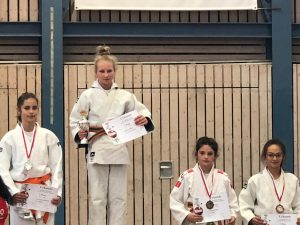 Sonntags war ein neuer Tag! Nela starte gleich nochmal, wie Diana auch, diesmal in der Altersklasse U11. Nela dominierte in der höheren Altersklasse jeden Kampf und errang sich den ersten Platz und somit die zweite Medaille an diesem Wochenende. Diana konnte sich diesmal auch durchsetzen und landete nach einem starken Turnier auf dem 3. Platz. Bei den unter 14-jährigen starteten Elli und Polina auch nochmal. Beide zeigten erneut super Kämpfe und gewannen auch jeweils eine Begegnung, dennoch reichte es nicht für eine Platzierung.