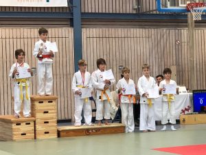 Der, über zwei Tage andauernde AdlerCup in Frankfurt, bot nahezu 2000 jungen Judokas aus 30 Ländern die Möglichkeit ihr Können unter Beweis zu stellen. Wer da natürlich nicht fehlen durfte, waren unsere Schwieberdinger Kids. Am Samstag, dem ersten Wettkampftag, waren Nela in der Altersklasse der unter 9-jährigen, in der U12 Diana, Michail, Polina und Noah, in der Altersklasse U15 Elli, Timm und Eugen und, als Älteste in der Schwieberdinger Runde, in der U18 Andreas und Kevin am Start. Gehen wir mal nach dem Alter vor: Unsere jüngste Starterin dieses Wochenendes war Nela in der U9. Sie startete super ins Turnier und gewann innerhalb der ersten 7 sec den ersten Kampf. Bis auf einen kleinen Fehler im zweiten Kampf, konnte sie das Turnier fehlerfrei bestreiten und belegte den zweiten Platz. In der U12 starteten Diana und Michail. Beide sind, trotz starker Kämpfe, frühzeitig ausgeschieden. Ihnen fehlte das letzte Quäntchen Glück. Polina lieferte auch starke Kämpfe ab, konnte sich aber nur einmal gegen ihre Gegnerin durchsetzen und landete auf dem 3. Platz! Noah stand einem riesigen Gegnerfeld gegenüber. Er machte, wie Polina auch, vier Kämpfe und konnte sich sogar zweimal behaupten und durchsetzen. Dennoch reichte es in diesem Feld „nur“ für Platz 7. Unseren unter 15-jährigen Elli und Timm erging es wie ihren Vereinskameraden in der U12; sie lieferten starke Kämpfe ab, waren aber nicht glücklich genug, um eine Platzierung rauszuholen. Eugen kämpfte sich bis ins Halbfinale vor, konnte sich dort taktisch nicht durchsetzen und verletzte sich an der Schulter. Im Kampf um Platz 3 wurde er wegen einer unerlaubten Technik disqualifiziert. Damit wurde er 5. Platzierter! Andreas und Kevin, unser ältester Kämpfernachwuchs an diesem Wochenende, gaben auch ihr Bestes und zeigten tolle Kämpfe. Beide konnten leider keine Platzierung erzielen, werden aber weiter an sich arbeiten und von sich hören lassen.