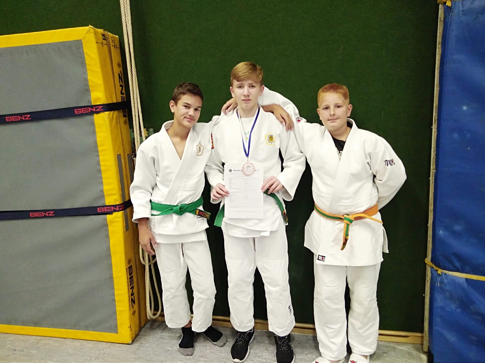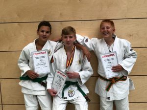 Michail hatte nach seinem Sieg am Samstag in der U12 richtig Lust zu Kämpfen und hat alle drei Kämpfe vorzeitig, jeweils also mit 20:0, mit unterschiedlichen Wurf- Konter- und Haltetechniken gewonnen. Ein starker 1. Platz.