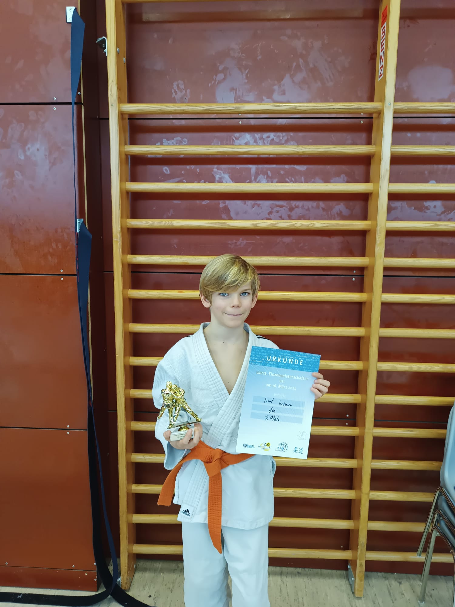 Karl hat seinen Gegnern keine Chance gelassen und nach vier Siegen württembergischer Meister geworden. GOLD!