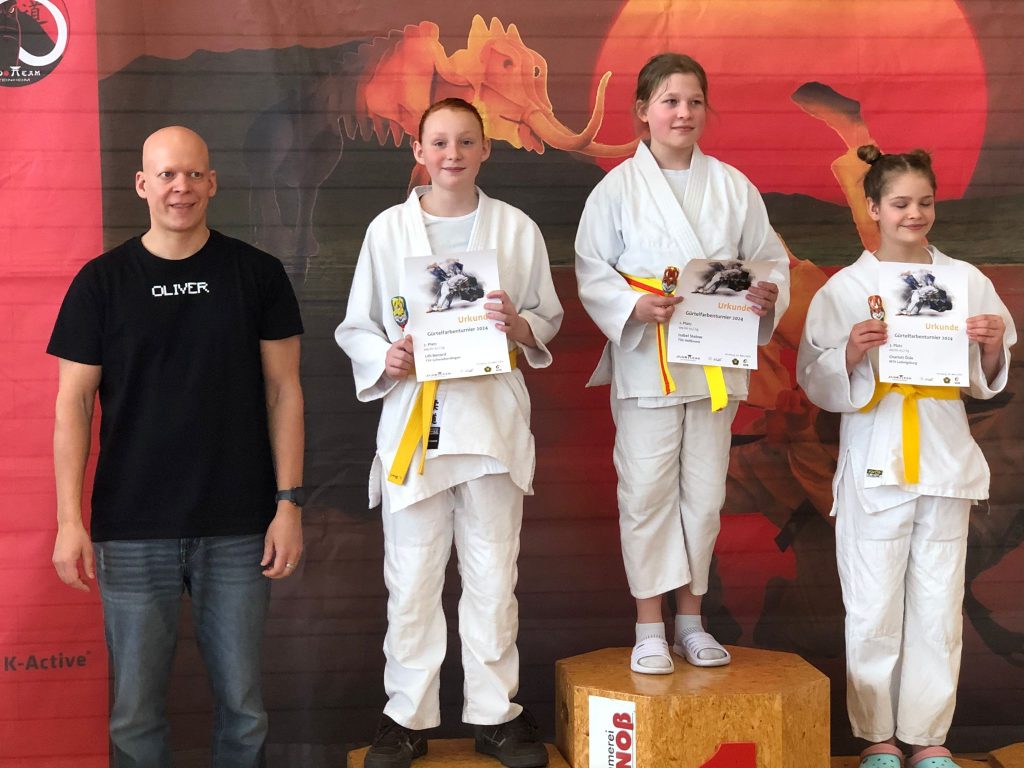 Beim Gürtelfarbenturnier am gleichen Wochenende landeten Margarete und Lukas auf dem dritten Platz. Bronze! Lilly, Justus und Philipp konnten Silber, den zweiten Platz erringen!