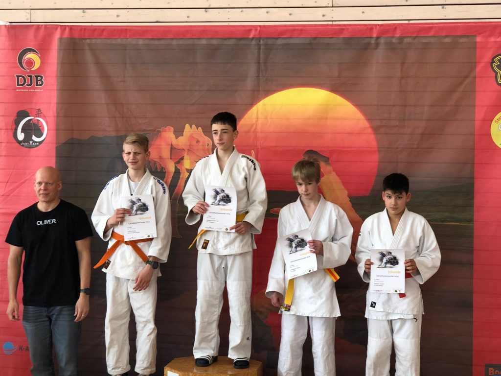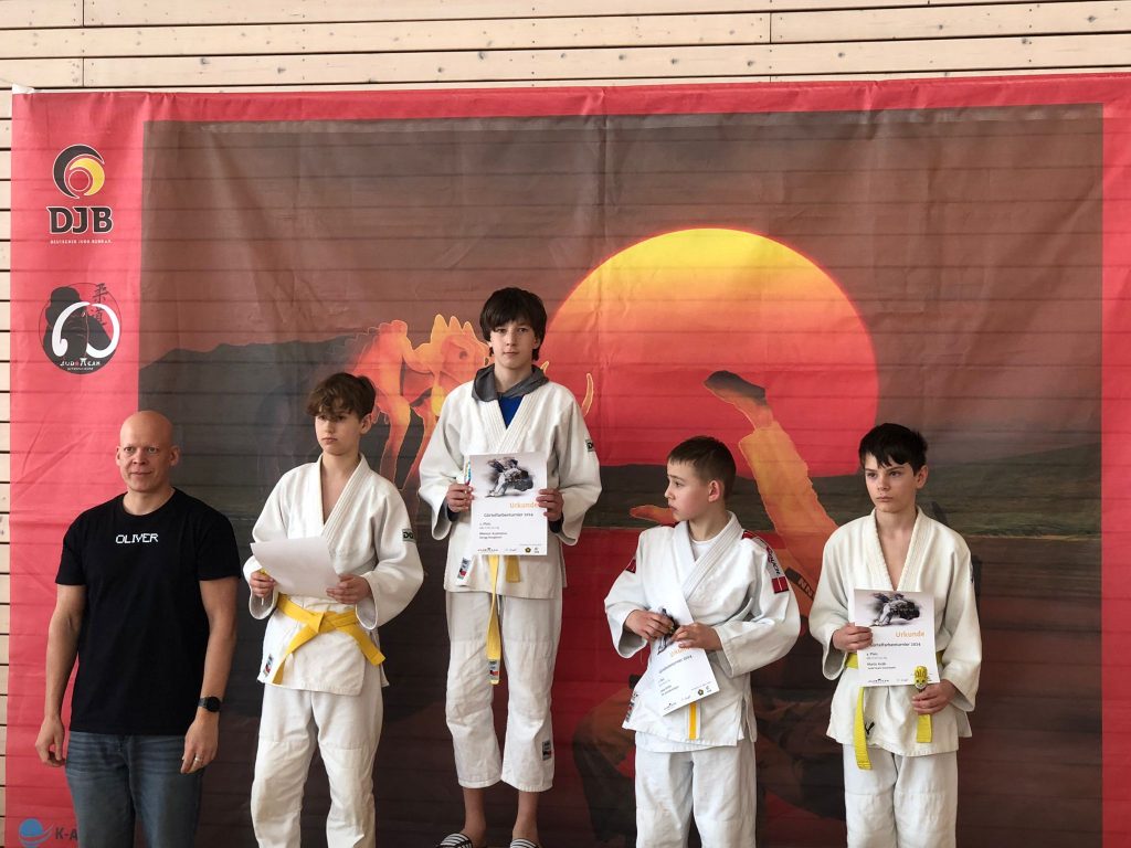Vergangenen Samstag ging es in der Felsenberghalle rund, denn die nordwürttembergischen Einzelmeisterschaften der unter 11-jährigen Judoka fand bei uns Schwieberdingern statt! Vor heimischer Kulisse konnten Lev, Platon und Kenny jeweils den dritten Platz und somit Bronze gewinnen! Maria und Karl setzten sogar noch einen drauf und errangen jeweils den zweiten Platz und somit Silber! Sie haben sich für die württembergische Meisterschaft qualifiziert und wir freuen uns schon auf noch mehr tolle Kämpfe!
