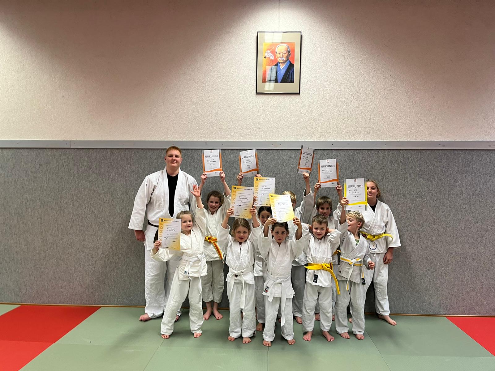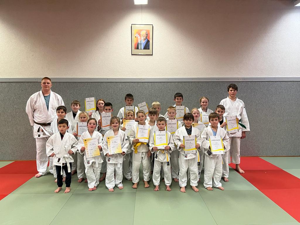 In der Schule werden nochmal die letzten Tests geschrieben und auch bei uns ist das nicht anders: Am vergangenen Freitag war Gürtelprüfungstag in Schwieberdingen. Insgesamt absolvierten 20 Judoka erfolgreich die Prüfung zur nächsthöheren Gradierung und erhielten so neue Gürtelfarben.